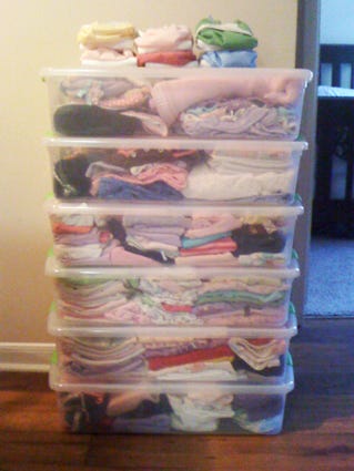 We were so blessed on Wednesday to receive two big boxes of baby girl clothes from our friends Aaron and Lane Reddin. I spent Thursday and Friday sorting, washing, and folding all of the clothes. I really can't believe how much they gave us. Mackenzie has enough clothes to get her solidly through her first year, and enough to give us a head start after…