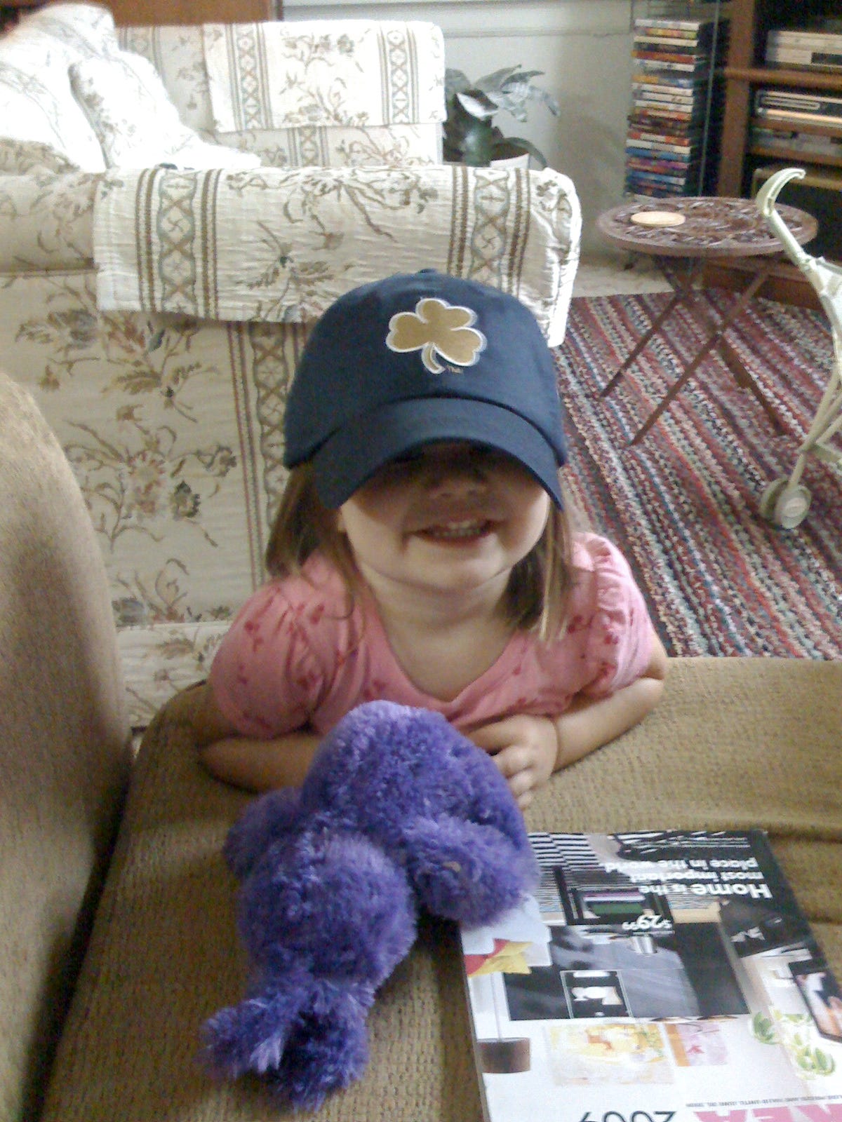 This pic is of my niece wearing my Notre Dame hat. Isn't she adorable? Whenever I see her, she's always fascinated with a hat or necklace or earrings I'm wearing... she's quite the two-year-old fashionista. :) I can't wait to see her and her mommy in a few weeks!!